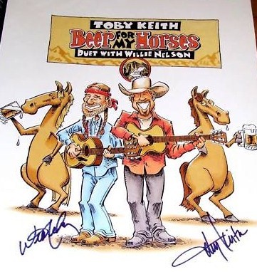 Beer for My Horses” is a song recorded by American country music artists Toby Keith and Willie Nelson. It was written by Keith and Scotty Emerick for Keith’s seventh studio album, Unleashed. The song was released as the album’s fourth and final single on April 7, 2003.